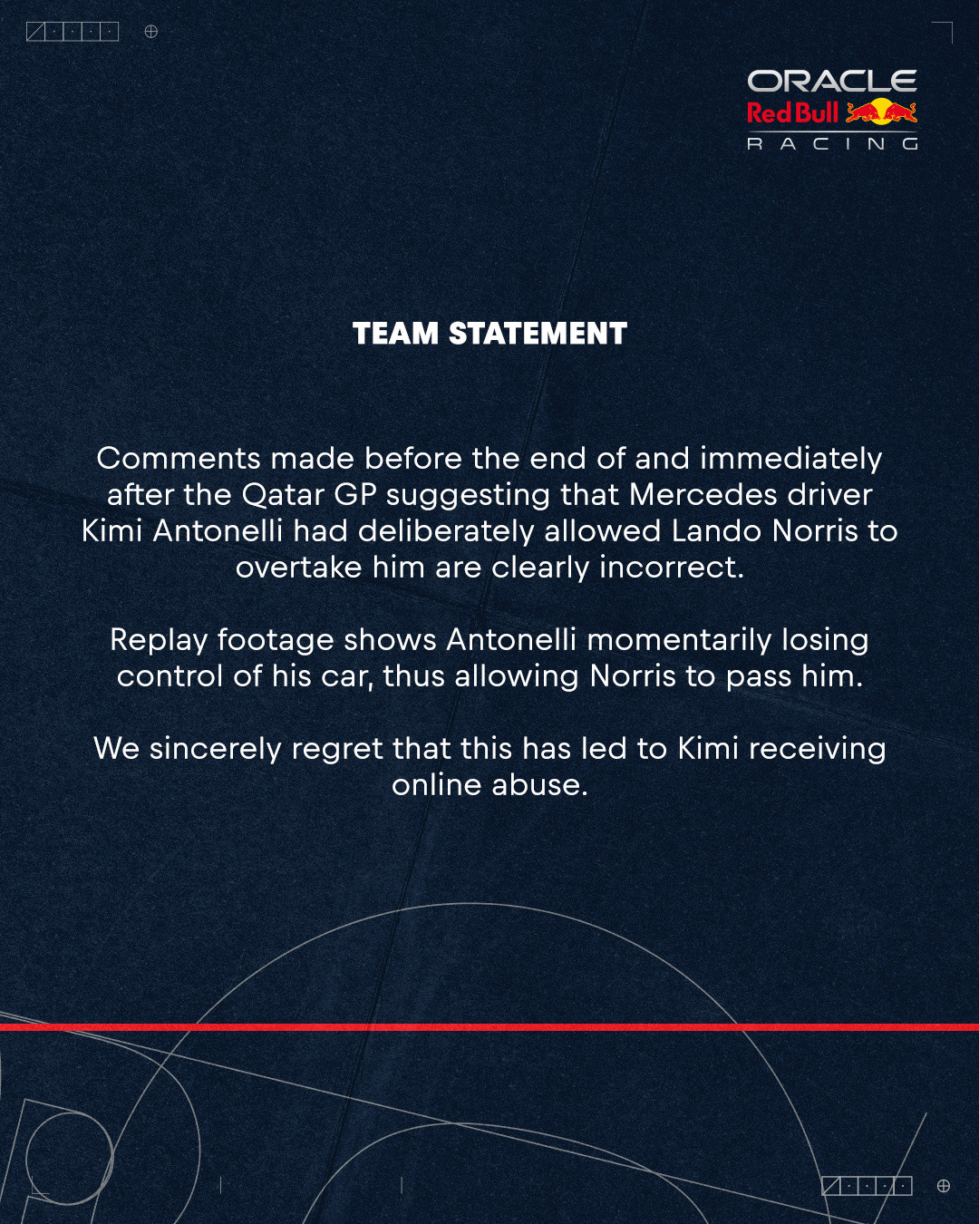 The reaction towards Kimi after the fact was… not ideal, to say the least. What should have stayed in the realm of racing error quickly became a slander campaign. Senior figures at Red Bull Racing (namely, Helmut Marko and Gianpiero “GP” Lambiase) insinuated that he “waved Norris by” in an act of collusion.