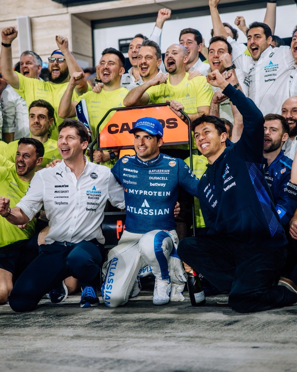 In third place is Williams’ Carlos Sainz, a surprise second podium for the Spaniard this season. The mid-level team had no business being this high up on paper again, but Carlos had the momentum to grab it. Williams pulled off one of the most improbable weekend turn-arounds of the year: from a modest P7 on the grid to a fully earned podium. The safety car snafu cleared the path— but it was Carlos who executed everything right to earn it.